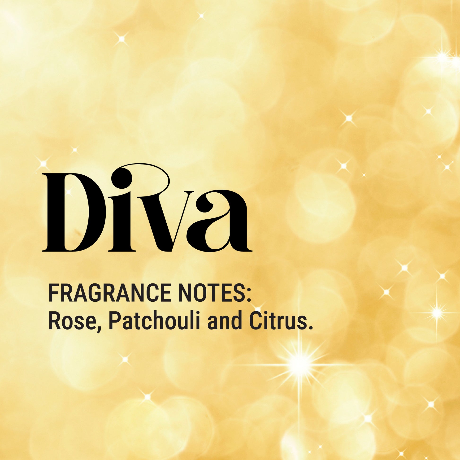 - Diva Fragrance Spray - sophisticated and elegant notes of rose, patchouli and citrus create the most gorgeous long lasting fragrance.